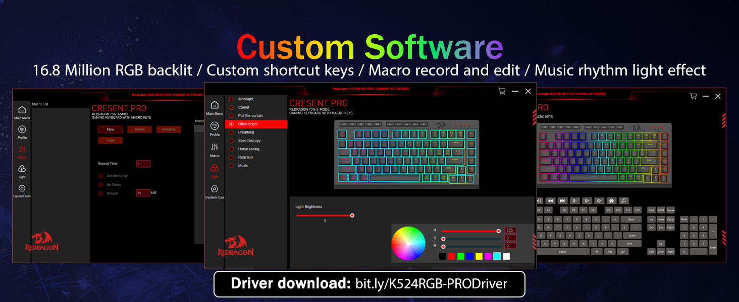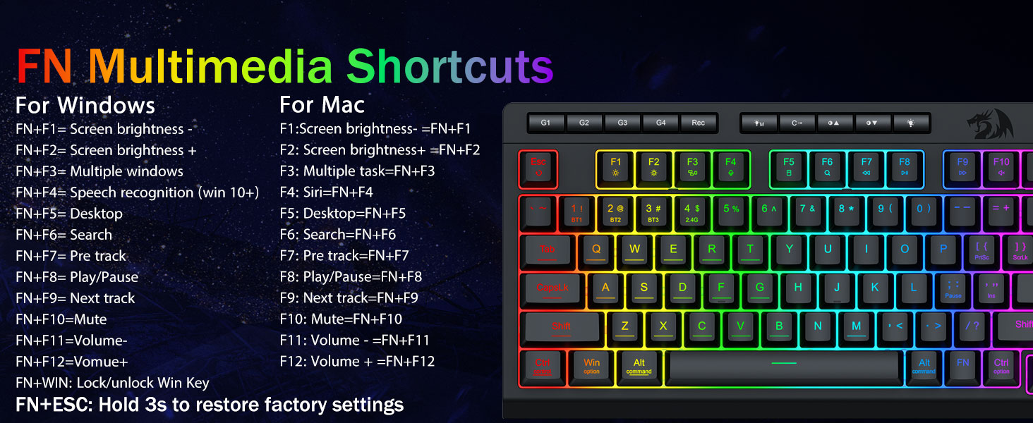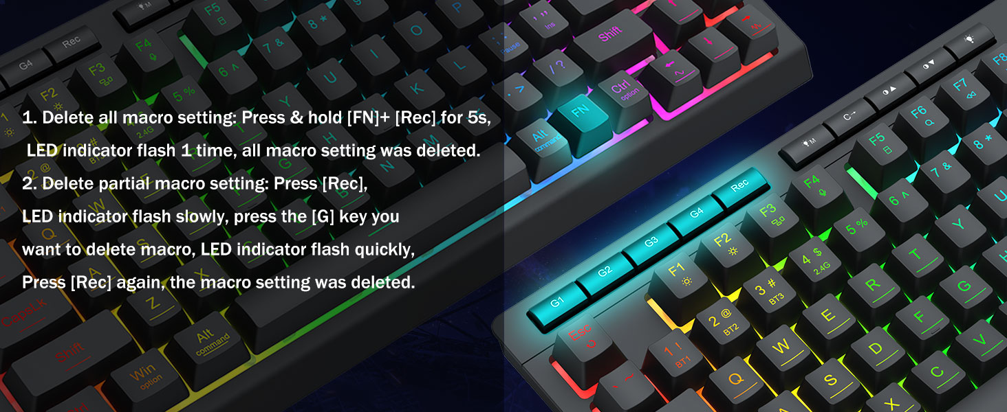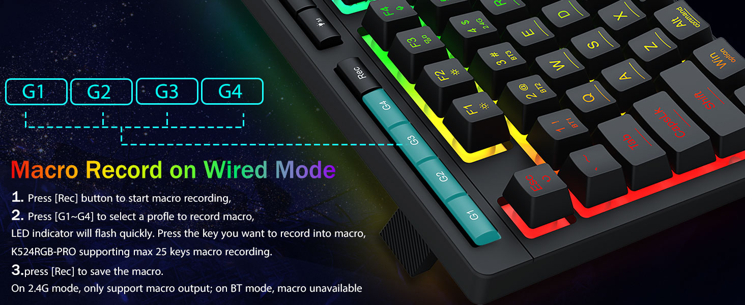 Macros personalizáveis, controle sem esforço- Programe as 4 teclas macro integradas (G1-G4) instantaneamente - sem necessidade de software. Grave combos complexos para jogos, atalhos para produtividade ou comandos de mídia. Redefina seu fluxo de trabalho em segundos. Você também pode usar software para personalizar funções, criar macros, ajustar luzes RGB e definir atalhos.