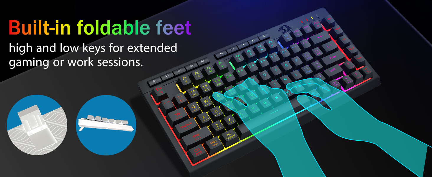 Digitação silenciosa e construída para durar- Apresentando teclas anti-ghosting (teclas com sublinhado) que permitem que 26 teclas funcionem simultaneamente para respostas de jogo rápidas e precisas da maneira que você pretendia. Botões de acesso rápido para brilho, modo de iluminação e modo de jogo para ajustar rapidamente o brilho, os perfis de iluminação e ativar o modo de jogo com o toque de um botão.